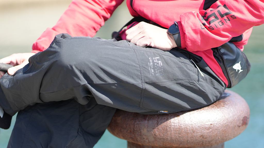 タフなCORDURA® Fabricを採用。岩場や磯場での擦れ・摩耗を気にせず、果敢に攻められる。